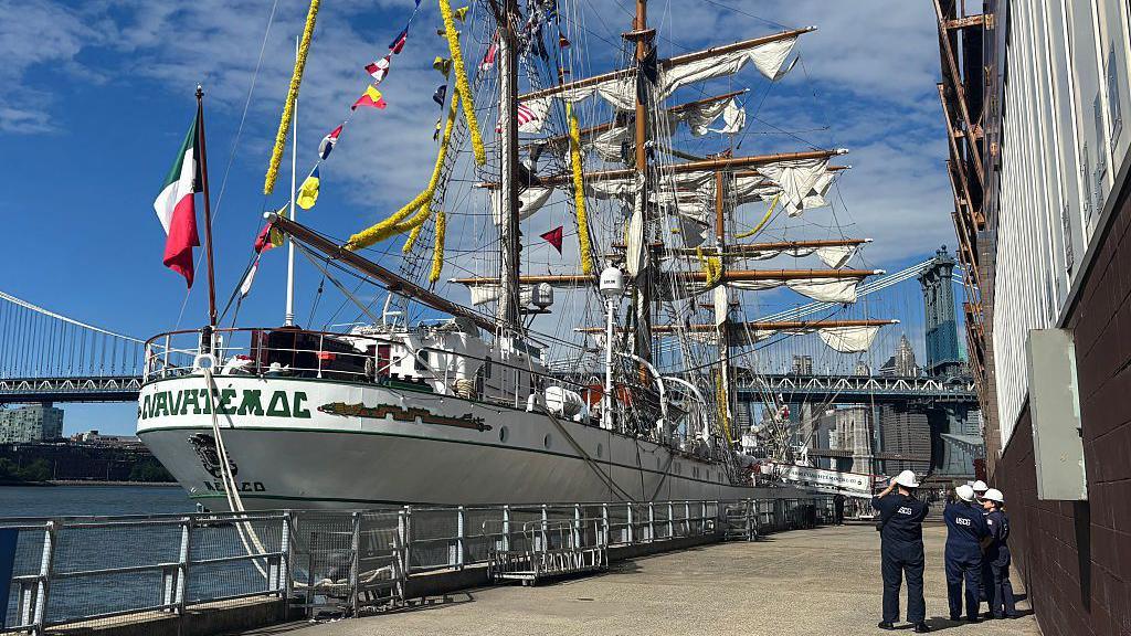 May 17, 2025 - The Mexican Ship, Cuauhtémoc crashes the Brooklyn Bridge in New York, USA.